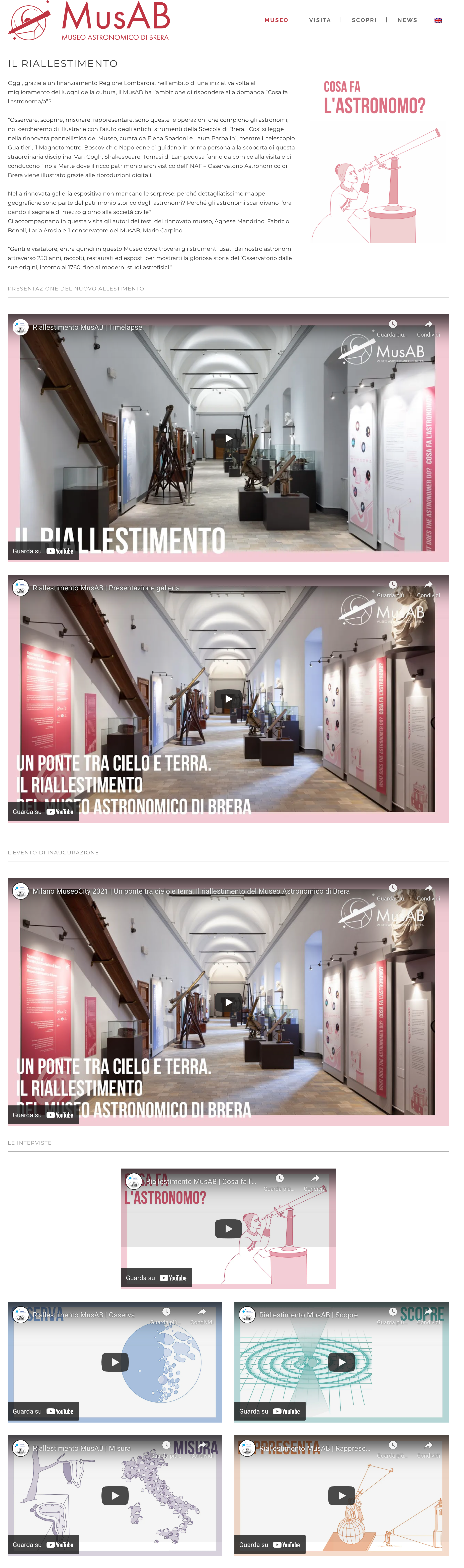 Pagina web video riallestimento MusAB
